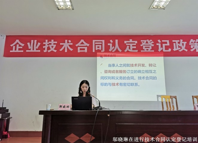 活动首先由区科技局事业成果科刘苏燕副科长就企业所关注的合同范本、合同上传审核时间、相关奖补政策作了简单说明,随后由我校登记中心的邬晓琳作为滨湖区合同登记审核员,结合内容详实的PPT、相关实际案例,仔细讲解了技术合同认定登记的相关政策、认定规则、认定登记实务以及企业的常见问题,让企业从多方面了解技术合同认定登记的要点。