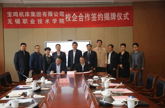 随后校企双方就双方合作意向进行对口交流洽谈,龚方红校长与李强董事长分别代表双方单位共同签订校企共建人才培养基地及培训中心的协议;朱爱胜书记与李强董事长为“宝鸡机床集团、无锡职业技术学院智能制造技术培训中心”和“无锡职业技术学院、宝鸡机床集团人才培养基地”揭牌;龚方红校长向袁炜副书记颁发了“全国机械行业智能制造职教集团副理事长”的聘书。