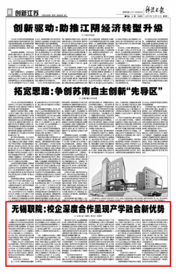 无锡职院控制技术学院近年来与无锡信捷电气股份有限公司、江苏和亿自动化科技有限公司、苏州博众精工科技有限公司等10多家企业结成战略合作伙伴,双方优势互补、资源共享,不仅共同培养人才、共同研发新品,而且在合作伙伴中标工程项目后,控制学院专业团队参与企业技术专利研发,双方共有知识产权,并由教师带领学生负责部分项目实施,先后承担了天津、丹东、南京、上海等地10多家企业、高校、研究所的设备控制系统设计、安装、调试,其中国内本科院校国家重点实验室就有3所。